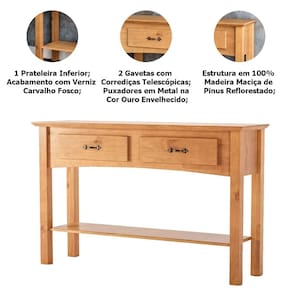 Dimensões do Aparador Rústico 2 Gavetas 100% Madeira: