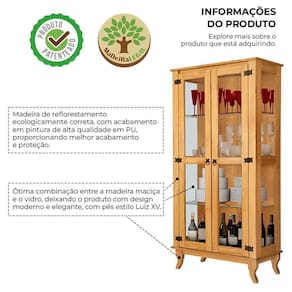 AS IMAGENS SÃO MERAMENTE ILUSTRATIVAS E PODEM SOFRER VARIAÇÕES DE COR E PEQUENOS DETALHES DE ACORDO COM O SEU MONITOR, ILUMINAÇÃO DO AMBIENTE E ATÉ MESMO A SUA PERCEPÇÃO VISUAL.Kit Cristaleira com Buffet 3 Portas em Madeira MaciÃa Acabamento Premium Imbuia