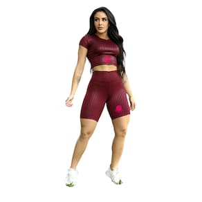Conjunto Bermuda e Cropped Básico de Poliéster FemininoMATERIAL : PoliésterMedidas Aproximadas :M - 38Uma roupa fitness de tecido poliéster é projetada para oferecer conforto e desempenho durante atividades físicas. O poliéster é um material leve, durável e de secagem rápida, ideal para quem pratica esportes. Geralmente, essas peças possuem um corte ergonômico que se ajusta bem ao corpo, permitindo liberdade de movimento.
