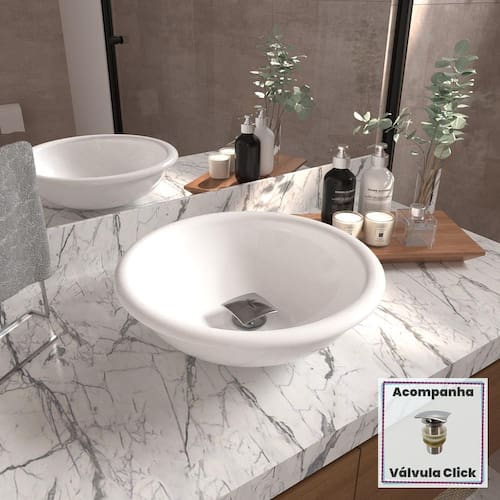 Para o modelo de sobrepor sugerimos a perfuração de 34 cm.
