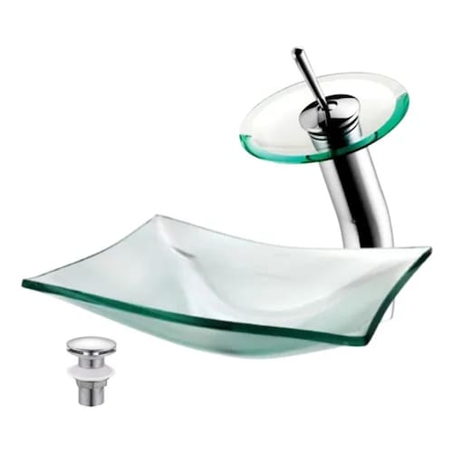 Kit Cuba de Vidro para Banheiro com Torneira Monocomando e Válvula