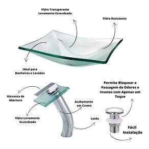 Kit Cuba de Vidro para Banheiro com Torneira Monocomando e Válvula
