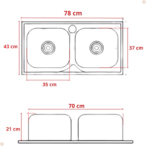 Especificações Cuba: - Marca: M&A - Medidas:78x43x21cm - Material Predominante: Aço inox 201 - Espessura: 0,8mm - Acabamento: escovado e acetinado - Aplicação: Embutir ou Sobrepor - Posição da Válvula: Centralizada - Furação da Válvula: 4.1/2' - Furo da torneira: 3,5 cm de diâmetro - Furo do Dosador: 2,5 cm de diâmetro - Válvula Escape/Ladrão: Não - Indicação: Cozinha - Aceita Triturador: Sim - Anti-Ruído: Sim (Fundo) - Acompanha Acessórios: Sim