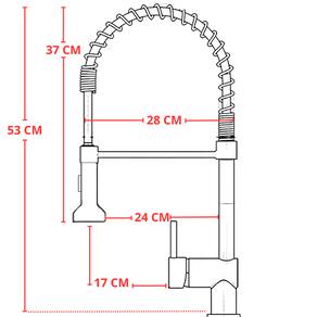 Especificações da Torneira: - Altura: 53 cm - Largura: 28 cm - Furacão de bancada: 35mm - Monocomando: Sim - Misturador: Sim - Acabamento: Cromado com acabamento arredondado para não machucar o cliente - Material: Metal + Plástico ABS ( Partes do Chuveirinho) - Abertura: Controle Gradual de Temperatura - Temperatura Máxima: 70 ° C