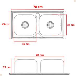Especificações Cuba: - Marca: M&A - Medidas:78x43x21cm - Material Predominante: Aço inox 201 - Espessura: 0,8mm - Acabamento: escovado e acetinado - Aplicação: Embutir ou Sobrepor - Posição da Válvula: Centralizada - Furação da Válvula: 4.1/2' - Furo da torneira: 3,5 cm de diâmetro - Furo do Dosador: 2,5 cm de diâmetro - Válvula Escape/Ladrão: Não - Indicação: Cozinha - Aceita Triturador: Sim - Anti-Ruído: Sim (Fundo) - Acompanha Acessórios: Sim