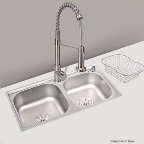 Itens Inclusos 1 Cuba 1 Sifão 1 Cesto escorredor 1 Dosador de detergente 300 ml 1 Válvula de escoamento 1 torneira 2 Mangueiras conectoras (Vem acoplado na torneira) 1 Mangueira Extensível (Vem acoplado na torneira) 1 Contrapeso Acessórios de fixação (vem acoplado na torneira)