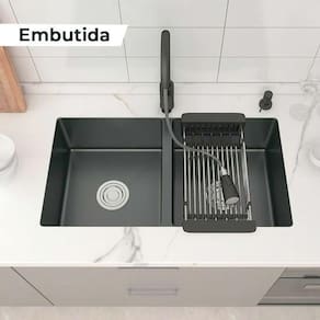 Kit cuba pia gourmet preta cozinha inox + torneira gourmet 2 saídas Cuba dupla gourmet preta brinovar Especificações técnicas Marca: brinovar Material: aço inoxidável 201 Cor: preto Acabamento: escovado acetinado Modelo: cuba dupla Formato: retangular Medidas internas cuba grande: 38 c x 39 l x 20 a cm Capacidade: 30 litros Medidas internas cuba pequena: 33 c x 31 l x 20 a cm Capacidade: 20 litros Medidas total da cuba: 78 c x 43 l x 20 a cm Capacidade total: 50 litros Espessura: 3mm Indicação: cozinha, espaços gourmet, ilhas e churrasqueiras Aplicação: embutir ou sobrepor Diâmetro furo para torneira: 35mm lado esquerdo Diâmetro furo para dispenser: 28mm lado direito Furo para válvula: 4 1 2 '' Posição da válvula: centralizada Aceita triturador: sim Acompanha acessórios: sim Válvula escape - ladrão: sim Capacidade do dispenser detergente: 300ml Escorredor extensível: medida aberto 45x21,5cm e medida fechado 28x21,5cm Sifão: sim Anti-ruído: sim, pintura externa e aplicação da manta no fundo e laterais : 90 dias Torneira gourmet 2 saídas preta brinovar Especificações técnicas: Marca: brinovar Cor: preto Acabamento: fosco Material: aço inox 304 Modelo: 2 saídas de bancada Indicação: cozinha - espaços gourmet - ilhas - churrasqueiras Instalação: bancada - pia Sistema: monocomando Bica: móvel e giratória com rotação 360 graus Quantidade de saídas de água: 2, torneira ducha e torneira para filtro filtro não incluso Jato de água: bica giratória aerado e bica móvel ducha gourmet com acionamento através do botão Arejador: sim Altura: 51 cm Largura: 4,5 cm Comprimento total: 26,5 cm Temperatura mínima da água: 5 celcius Temperatura máxima da água: 75 celcius Utilização somente com água fria: sim, necessário a utilização de adaptador 't' não incluso Aquecedor compatível com a torneira: elétrico, solar e gás não incluso Pressão mínima da água: 3mca metros de coluna dágua Pressão máxima da água: 40mca metros de coluna dágua Pressão ideal da água: acima de 5mca metros de coluna dágua Cartucho: cartucho cerâmico de alta durabilidade 500.000 ciclos Perfuração da bancada: 3,5 cm Rosca: 3 cm : 90 dias Atenção: o produto não acompanha filtro, apenas a torneira para o filtro Cuidados: Não use palha de aço, produtos químicos, não usar ácido muriático, água sanitária ou qualquer outro solvente para a limpeza. Limpe periodicamente o seu produto apenas com um pano macio, água e sabão neutro. Para manter o brilho do seu produto recomendamos o uso da pasta para polir e remover manchas em superfícies de aço inoxidável. Itens inclusos: Torneira monocomando 2 saídas Mangueira flexível de aço trançado 50cm para ligação de água quente e fria Sistema de fixação Anéis de vedação Cuba dupla brinovar projetada para aplicação sobreposta ou embutida. Dosador de sabão de 300ml com sistema recarrega fácil. Não é necessário retirar o reservatório para reabastecê-lo. Cesto escorredor extensível Válvula 4 1 2 totalmente compatíveis com o uso de trituradores elétricos . Válvula e tubulação do ladrão Sifão Marca: Não Informado