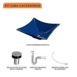 Sobre o ProdutoKit Cuba L30 C/Válvula Click 1''B (2,6cm) + Sifão Pvc + Flexível AmareloDescrição do ProdutoO Kit KTCALX300W.AM.AP02 é uma combinação perfeita da Cuba de Apoio CALX300W.AM com acessórios complementares, prontos para instalação no seu lavabo ou móvel de banheiro. Ele conta com 1 Cuba de Apoio Folha L30 29,8X29,8cm Amarelo + 1 Válvula P/Lavatório Click Up Interno 1 (2,6cm) V02 Metal Cromado + 1 Sifão Pvc Universal Branco + 1 Engate Flexível Pvc Branco 40cm + 0+ 0 , todos compatíveis e prontos para instalação.Itens Inclusos:1 Cuba de Apoio + 1 Válvula de Escoamento Clik Up + 1 Sifão PVC Universal Branco + 1 Engate Flexível 40cm Informações Logísticas:Vol.01 - Comp.: 33cm - Prof.: 33cm - Alt.: 17cm - Peso Bruto: 3,415Kg Observações:Não acompanha acessórios decorativos. Imagens meramente ilustrativas.Informações Técnicas / CaracterísticasCuba de Apoio Folha L30 29,8X29,8cm Amarelo- Cor: Amarelo- Marca: Compace- Modelo: CALX300- Linha: Lux- Formato: Folha- Tipo de Cuba: Apoio- Material: Mármore Sintético- Acabamento: Hard Lacca PU- Escala de Brilho: Brilho- Possui Ladrão: Não- Possui Furação para Torneira: Não - Diâmetro do Furo para Válvula: (40mm) - DN 40 - Comprimento: 29,8cm- Largura: 29,8cm- Altura: 11,5cm - Peso Líq.: 2,33Kg- Recomendações de Uso, Manutenção e Limpeza: Utilize flanela seca ou pano macio, levemente umedecido com água. Evite contato com produtos químicos e abrasivos (solventes, thinner, acetona etc) e não utilize nenhum tipo de esponja de aço. Para maior brilho, recomendamos a utilização de cera automotiva n 2.- Necessita de Montagem: Sim / Acompanha Manual de Montagem- Complexidade da Montagem: Média: pode ser montado por mais de uma pessoa e/ou necessite de maior conhecimento para montagem.- Garantia: 6 mesesVálvula P/Lavatório Click Up Interno 1 (2,6cm) V02 Metal Cromado- Cor: Cromado- Marca: Compace- Modelo: CO1612V02- Linha: Complementos- Tipo: Click- Local: Lavatório- Acabamento: Cromado- Material: Zamak, Elastômeros e Plásticos de Engenharia.- Bitola do Cano: 1- Possui Ladrão: Não - Altura: 7cm- Diâmetro: 5,5cm - Altura Total: 8cm- Peso Líq.: 0,14Kg- Recomendações de Uso, Manutenção e Limpeza: Limpar apenas com pano macio e sabão neutro. Não usar produtos abrasivos como sapólio, palha de aço e produtos químicos.- Necessita de Montagem: Sim- Complexidade da Montagem: Média: pode ser montado por mais de uma pessoa e/ou necessite de maior conhecimento para montagem.- Garantia: 5 anosSifão Pvc Universal Branco- Cor: Branco- Marca: Compace- Modelo: SPVC- Linha: Complementos- Tipo: Flexível- Local: Multiuso- Acabamento: PVC- Material: PVC- Bitola do Cano: Universal - Temperatura da Água Indicada: Mín.: 0 Celsius / Máx.: 90 Celsius - Comprimento: 29cm - Diâmetro: 5cm- Comprimento Total: 71cm - Peso Líq.: 0,1Kg- Recomendações de Uso, Manutenção e Limpeza: Limpar apenas com pano macio e sabão neutro. Não usar produtos abrasivos como sapólio, palha de aço e produtos químicos.- Necessita de Montagem: Sim- Complexidade da Montagem: Média: pode ser montado por mais de uma pessoa e/ou necessite de maior conhecimento para montagem.- Garantia: 01 anoEngate Flexível Pvc Branco 40cm- Cor: Branco- Marca: Compace- Modelo: FLEX- Linha: Complementos- Tipo: Flexível- Local: Multiuso- Acabamento: PVC- Material: PVC- Bitola do Cano: Universal - Pressão Indicada: 40 m.c.a.- Temperatura da Água Indicada: Fria - Comprimento: 40cm - Diâmetro: 2cm - Peso Líq.: 0,08Kg- Recomendações de Uso, Manutenção e Limpeza: Limpar apenas com pano macio e sabão neutro. Não usar produtos abrasivos como sapólio, palha de aço e produtos químicos.- Necessita de Montagem: Sim- Complexidade da Montagem: Média: pode ser montado por mais de uma pessoa e/ou necessite de maior conhecimento para montagem.- Garantia: 01 ano Formato: Folha | Tipo de Cuba: Apoio | Material: Mármore Sintético | Acabamento: Hard Lacca PU Fosco | Escala de Brilho: Fosco | Possui Furação para Torneira: Não | Diâmetro do Furo para Torneira: 0 | Diâmetro do Furo para Válvula: (40mm) - DN 40 | Itens Inclusos: 1 Cuba de Apoio + 1 Válvula de Escoamento Clik Up + 1 Sifão PVC Universal Branco + 1 Engate Flexível 40cm | Limite de unidades por venda: É possível comprar até 1 unidade por venda. | Quantidade máxima de pedido: 1 | Baterias são necessárias?: false Cor: Azul Escuro