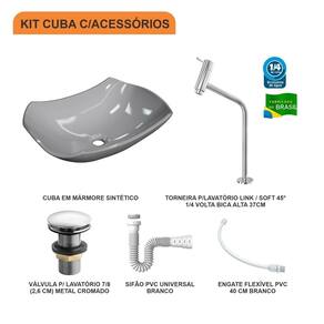 Kit Cuba L42 C/Torneira Link 1062 Metal + Válvula Click 1``G + Sifão Pvc + Flexível - Cinza