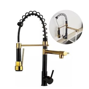 Especificações técnicas: Marca: brinovar Cor: preto e dourado Acabamento: preto fosco e dourado cromado brilhante Material: aço inox 304 Modelo: 2 saídas de bancada Indicação: cozinha - espaços gourmet - ilhas - churrasqueiras Instalação: bancada - pia Sistema: monocomando Bica: móvel e giratória com rotação 360 graus Quantidade de saídas de água: 2, torneira ducha e torneira para filtro filtro não incluso Jato de água: bica giratória aerado e bica móvel ducha gourmet com acionamento através do botão Arejador: sim Altura: 51 cm Largura: 4,5 cm Comprimento total: 26,5 cm Temperatura mínima da água: 5 celcius Temperatura máxima da água: 75 celcius Utilização somente com água fria: sim, necessário a utilização de adaptador 't' não incluso Aquecedor compatível com a torneira: elétrico, solar e gás não incluso Pressão mínima da água: 3mca metros de coluna dágua Pressão máxima da água: 40mca metros de coluna dágua Pressão ideal da água: acima de 5mca metros de coluna dágua Cartucho: cartucho cerâmico de alta durabilidade 500.000 ciclos Perfuração da bancada: 3,5 cm Rosca: 3 cm Garantia: 90 dias