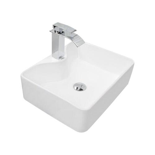 Kit Cuba Pia Louça Cerâmica Banheiro C/Torn e Vál Cromada 28