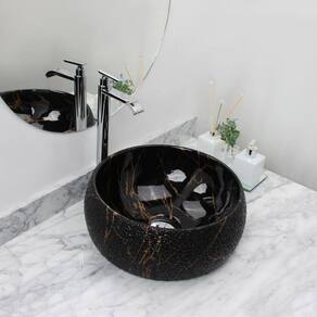 Informações da Cuba Tipo de Cuba : Cuba Oval em cerâmica de altíssima qualidade e durabilidade. Acabamento (Construção e Acabamento) : Esmaltado Tonalidade : Preta. Cor : Preto e Dourado Tecnologia : Smart Norte Peso (kg) : 10 Altura (cm) : 16 Largura (cm) : 39 Comprimento (cm) : 39