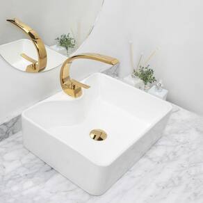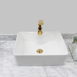 Kit Cuba Pia Louça Cerâmica Banheiro C/Torn e Vál Dourada 27
