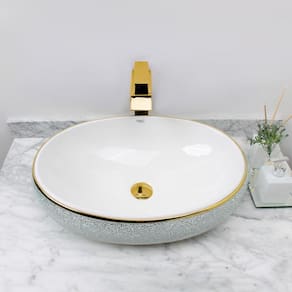 Informações da Cuba Tipo de Cuba : Cuba oval em cerâmica de altíssima qualidade e durabilidade. Acabamento (Construção e Acabamento) : Esmaltado Tonalidade : Branco com detalhes dourados e espelhados. Cor : Branco Brilhante Tecnologia : Smart Norte Peso (kg) : 13 Altura (cm) : 15 Largura (cm) : 42 Comprimento (cm) : 62