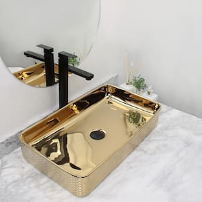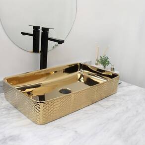 Tipo de Cuba : Cuba Retangular em cerâmica de altíssima qualidade e durabilidade. Acabamento Construção e Acabamento : Esmaltado Tonalidade : Dourada. Cor : Dourada. Tecnologia : Smart Norte Peso kg : 13 Altura cm : 11 Largura cm : 35 Comprimento cm : 61