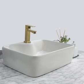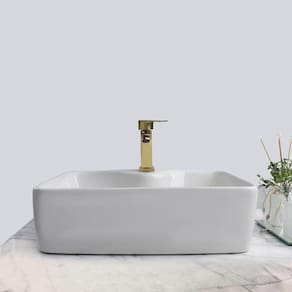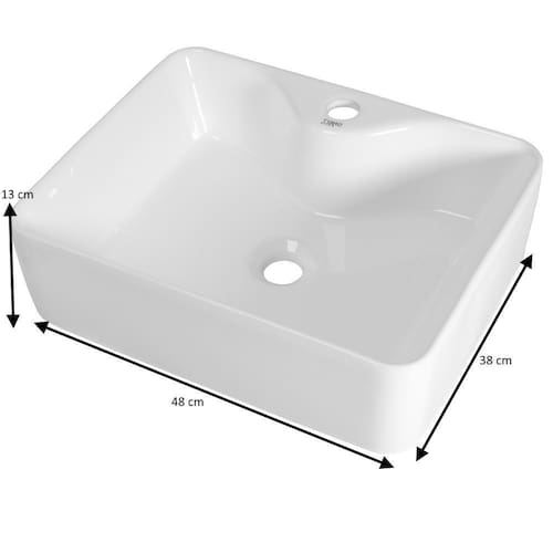 Kit Cuba Pia Louça Cerâmica Banheiro Com Torn E Vál Dourada 5 Decore seu banheiro com este kit de sobrepor contendo cuba, torneira e válvula que não é apenas uma tendência no mundo do desenho, mas também lhe dará espaço suficiente em seus lados para colocar itens de higiene pessoal.Sóbria e minimalistaAs linhas curvadas e simples de seu desenho , dará um toque moderno e minimalista a este importante espaço da sua casa.Durável e fácil de usarFeita em cerâmica legitima, este artefato oferece excelente qualidade e durabilidade, e também é uma oportunidade estética para decorar seu banheiro, ao qual trará personalidade e estilo.Medidas da cuba: A 13 cm L 38 cm C 48 cmMedidas da torneira: A 15 cm L 4,5 cm C 12 cmMedidas da Válvula Click: A 9 cm L 6,5 cm