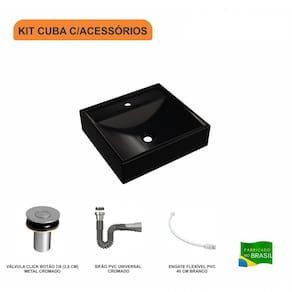 O Kit KTCAQD390W.CL.AC02 é uma combinação perfeita da Cuba de Apoio CAQD390W.CL com acessórios complementares, prontos para instalação no seu lavabo ou móvel de banheiro. Ele conta com 1 Cuba de Apoio Quadrada Q39 40X37,5cm Colorida 1 Válvula P/Lavatório Click Up Interno 1" (2,6cm) V02 Metal Cromado 1 Sifão Pvc Universal Cromado 1 Engate Flexível Pvc Branco 40cm, todos compatíveis e prontos para instalação. Acompanha Flexível: Sim Acompanha Manual de Instalação: Sim Acompanha Sifão: Sim Acompanha Torneira: Não Altura: 10 cm Comprimento: 40 cm Comprimento do Flexível: 40 cm Comprimento Máximo do Sifão: 71 cm Comprimento Mínimo do Sifão: 29 cm Cor: Preto Fosca Cor do Produto: Preto Fosca Diâmetro de Entrada do Sifão: 1.1/4 Polegadas Diâmetro de Saída do Sifão: 1.1/4 Polegadas Diâmetro do Flexível: 1/2 Polegada Diâmetro do furo: 32 mm Diâmetro para válvula: 40 mm Informações Complementares: Sobre o ProdutoKit Cuba Q39 C/Válvula Click 1''B (2,6cm) + Sifão Cromado + Flexível Preto FoscaDescrição do ProdutoO Kit KTCAQD390W.CL.AC02 é uma combinação perfeita da Cuba de Apoio CAQD390W.CL com acessórios complementares, prontos para instalação no se Itens Inclusos: 1 Cuba de Apoio, 1 Válvula de Escoamento Clik Up,1 Sifão PVC Universal Cromado e 1 Engate Flexível 40cm Largura: 37 cm Linha ou Coleção: Plus Manual de Montagem e Instalação: https://product-hub-prd.madeiramadeira.com.br/610470/documents/7ffb7bbc-12ef-4000-b38c-bd441f147aa8610654ktcaqd390wclap02.rar Material do Flexível: PVC Material do Sifão: PVC Material Principal: Mármore Sintético Origem do Produto: Nacional Peso: 5 kg Possui furação para torneira: Sim Possui ladrão: Não Pressão Indicada do Flexível: Baixa Pressão Recomendações de Uso, Manutenção e Limpeza: Utilize flanela seca ou pano macio, levemente umedecido com água. Evite contato com produtos químicos e abrasivos (solventes, thinner, acetona etc) e não utilize nenhum tipo de esponja de aço. Para maior brilho, recomendamos a utilização de cera automotiva n° 2. Tipo de sifão: Flexível Válvula oculta: Não