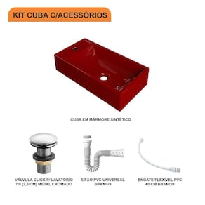 Sobre o ProdutoKit Cuba RL545 C/Válvula Click 1''G + Sifão Pvc + Flexível AmareloDescrição do ProdutoO Kit KTCARL545W.AM.AP03 é uma combinação perfeita da Cuba de Apoio CARL545W.AM com acessórios complementares, prontos para instalação no seu lavabo ou móvel de banheiro. Ele conta com 1 Cuba de Apoio Retangular Roma 54,5X28,6cm Amarelo + 1 Válvula P/Lavatório Click Up 1" (2,6cm) V03 Metal Cromado + 1 Sifão Pvc Universal Branco + 1 Engate Flexível Pvc Branco 40cm + 0+ 0 , todos compatíveis e prontos para instalação.Itens Inclusos:1 Cuba de Apoio + 1 Válvula de Escoamento Clik Up + 1 Sifão PVC Universal Branco + 1 Engate Flexível 40cm Informações Logísticas:Vol.01 Comp.: 59,5cm Prof.: 34,5cm Alt.: 18cm Peso Bruto: 7,416Kg Observações:Não acompanha acessórios decorativos. Imagens meramente ilustrativas.Informações Técnicas / CaracterísticasCuba de Apoio Retangular Roma 54,5X28,6cm Amarelo Cor: Amarelo Marca: Compace Modelo: CARL545 Linha: Conect Formato: Retangular Tipo de Cuba: Apoio Material: Mármore Sintético Acabamento: Hard Lacca PU Escala de Brilho: Brilho Possui Ladrão: Não Possui Furação para Torneira: Sim Diâmetro do Furo para Torneira: (32mm) - DN 32 Diâmetro do Furo para Válvula: (40mm) - DN 40 Comprimento: 54,5cm Largura: 28,6cm Altura: 12,7cm Peso Líq.: 6,3Kg Recomendações de Uso, Manutenção e Limpeza: Utilize flanela seca ou pano macio, levemente umedecido com água. Evite contato com produtos químicos e abrasivos (solventes, thinner, acetona etc) e não utilize nenhum tipo de esponja de aço. Para maior brilho, recomendamos a utilização de cera automotiva n 2. Necessita de Montagem: Sim / Acompanha Manual de Montagem Complexidade da Montagem: Média: pode ser montado por mais de uma pessoa e/ou necessite de maior conhecimento para montagem. Garantia: 6 mesesVálvula P/Lavatório Click Up 1" (2,6cm) V03 Metal Cromado Cor: Cromado Marca: Compace Modelo: CO1613V03 Linha: Complementos Tipo: Click Local: Lavatório Acabamento: Cromado Material: Zamak, Elastômeros e Plásticos de Engenharia. Bitola do Cano: 1" Possui Ladrão: Não Altura: 8cm Diâmetro: 5,7cm Altura Total: 9cm Peso Líq.: 0,15Kg Recomendações de Uso, Manutenção e Limpeza: Limpar apenas com pano macio e sabão neutro. Não usar produtos abrasivos como sapólio, palha de aço e produtos químicos. Necessita de Montagem: Sim Complexidade da Montagem: Média: pode ser montado por mais de uma pessoa e/ou necessite de maior conhecimento para montagem. Garantia: 5 anosSifão Pvc Universal Branco Cor: Branco Marca: Compace Modelo: SPVC Linha: Complementos Tipo: Flexível Local: Multiuso Acabamento: PVC Material: PVC Bitola do Cano: Universal Temperatura da Água Indicada: Mín.: 0 Celsius / Máx.: 90 Celsius Comprimento: 29cm Diâmetro: 5cm Comprimento Total: 71cm Peso Líq.: 0,1Kg Recomendações de Uso, Manutenção e Limpeza: Limpar apenas com pano macio e sabão neutro. Não usar produtos abrasivos como sapólio, palha de aço e produtos químicos. Necessita de Montagem: Sim Complexidade da Montagem: Média: pode ser montado por mais de uma pessoa e/ou necessite de maior conhecimento para montagem. Garantia: 01 anoEngate Flexível Pvc Branco 40cm Cor: Branco Marca: Compace Modelo: FLEX Linha: Complementos Tipo: Flexível Local: Multiuso Acabamento: PVC Material: PVC Bitola do Cano: Universal Pressão Indicada: 40 m.c.a. Temperatura da Água Indicada: Fria Comprimento: 40cm Diâmetro: 2cm Peso Líq.: 0,08Kg Recomendações de Uso, Manutenção e Limpeza: Limpar apenas com pano macio e sabão neutro. Não usar produtos abrasivos como sapólio, palha de aço e produtos químicos. Necessita de Montagem: Sim Complexidade da Montagem: Média: pode ser montado por mais de uma pessoa e/ou necessite de maior conhecimento para montagem. Garantia: 01 ano
