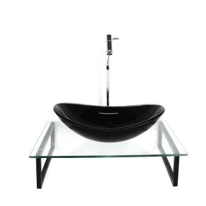 Kit cuba de vidro oval 10mm preta com tampo 50cm incolor e suporte preto Os nossos gabinetes são indicados para projetos arrojados e de muito bom gosto, além de valorizar o seu ambiente com sofisticação em uma decoração de alto padrão, ele consegue usufruir das vantagens que o vidro proporciona e gerar uma durabilidade indiscutível, sem contar que com as várias opções de cores, você sempre poderá encontrar uma cor perfeita para o seu banheiro. Os vidros são pintados com tinta de alta performance, o que lhe garante a permanência da cor . Itens inclusos: - bancada de vidro com furo para instalação da torneira 3,5cm diâmetro e para válvula click 4,5cm diâmetro - cuba de vidro oval - estrutura de polipropileno preto, ultra resistente a umidade e não enferruja - kit parafusos completo para instalação dimensões: - bancada de vidro: 50cm x 35cm largura x profundidade - cuba de vidro oval: 38cm x 26cm comprimento x profundidade Espessuras: - bancada de vidro: 8mm - cuba de vidro: 10mm Montagem: montagem e instalação não inclusa na venda ou preço do produto, elas são de inteira responsabilidade do cliente. Atenção: preço referente somente ao tampo de vidro, cuba de vidro e suporte completo para instalação, este kit não inclui espelho, válvula, torneira e nem sifão. Imagens ilustrativas. Marca: Não Informado
