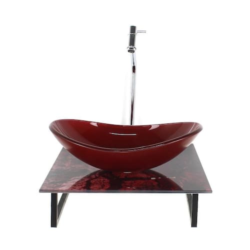 Kit cuba de vidro oval 10mm com tampo de vidro 40cm x 40cm mármore avermelhado e suporte torneira valvula Os nossos gabinetes são indicados para projetos arrojados e de muito bom gosto, além de valorizar o seu ambiente com sofisticação em uma decoração de alto padrão, ele consegue usufruir das vantagens que o vidro proporciona e gerar uma durabilidade indiscutível, sem contar que com as várias opções de cores, você sempre poderá encontrar uma cor perfeita para o seu banheiro. A bancada não é adesivada, a pintura da mesma é feita com impressão em alta definição texturizada, garantindo com que as cores impressas não se deformem com o passar dos anos e também não solte do vidro. Os vidros são pintados com tinta de alta performance, o que lhe garante a permanência da cor . Itens inclusos: - bancada de vidro com furo para instalação da torneira 3,5cm diâmetro e para válvula click 4,5cm diâmetro - cuba de vidro oval - estrutura de polipropileno preto, ultra resistente a umidade e não enferruja - kit parafusos completo para instalação - válvula click - torneira metal cromada Dimensões: - bancada de vidro: 40cm x 40cm largura x profundidade - cuba de vidro oval: 38cm x 26cm comprimento x profundidade - válvula: 1 1/4 Espessuras: - bancada de vidro: 8mm - cuba de vidro: 10mm Dados técnicos da torneira: Material: liga metálica cromada Conexão de entrada: 1/2 polegada -1/4 volta Altura total da torneira: 37 cm Altura da queda dágua: 27 cm Montagem: montagem e instalação não inclusa na venda ou preço do produto, elas são de inteira responsabilidade do cliente. Atenção: preço referente ao tampo de vidro, cuba de vidro, suporte completo para instalação,válvula e torneira. Imagens ilustrativas. Marca: Não Informado