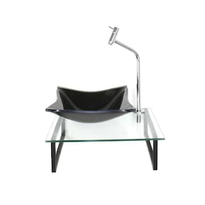 dimensões: - bancada de vidro: 40cm x 35cm largura x profundidade - cuba de vidro quadrada: 31cm x 31cm comprimento x profundidade