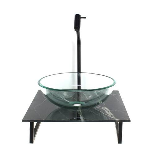 Kit cuba de vidro redonda 10mm incolor com tampo de vidro 40cm x 40cm mármore preto e suporte preto os nossos gabinetes são indicados para projetos arrojados e de muito bom gosto, além de valorizar o seu ambiente com sofisticação em uma decoração de alto padrão, ele consegue usufruir das vantagens que o vidro proporciona e gerar uma durabilidade indiscutível, sem contar que com as várias opções de cores, você sempre poderá encontrar uma cor perfeita para o seu banheiro. A bancada não é adesivada, a pintura da mesma é feita com impressão em alta definição texturizada, garantindo com que as cores impressas não se deformem com o passar dos anos e também não solte do vidro. Os vidros são pintados com tinta de alta performance, o que lhe garante a permanência da cor. Itens inclusos: - bancada de vidro com furo para instalação da torneira 3,5cm diâmetro e para válvula click 4,5cm diâmetro - cuba de vidro redonda - estrutura de polipropileno preto, ultra resistente a umidade e não enferruja - kit parafusos completo para instalação