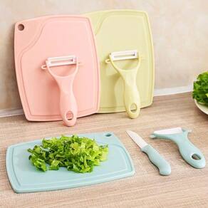 Contém: 1 Tábua, 1 Faca e 1 Descascador de legumes.