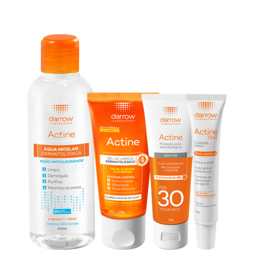 Kit Darrow Actine Care Trat proporciona uma aparência equilibrada da limpeza a proteção no dia a dia. Ideal para os cuidados para pele oleosa e acneica.