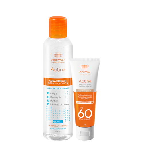 O Kit Darrow Actine Dermatológica FPS60 traz produtos que ajudam a controlar a oleosidade com purificação, além de alta proteção e uniformização da pele.
