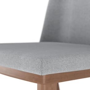 Pés usinados em madeira maciça com acabamento em pintura PU de alta resistência e sapatas de proteção.