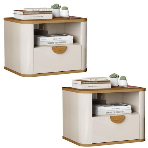 Kit de 2 Mesa de Cabeceira Suspensa Buriti 1 Gaveta e Nicho - Bege Claro