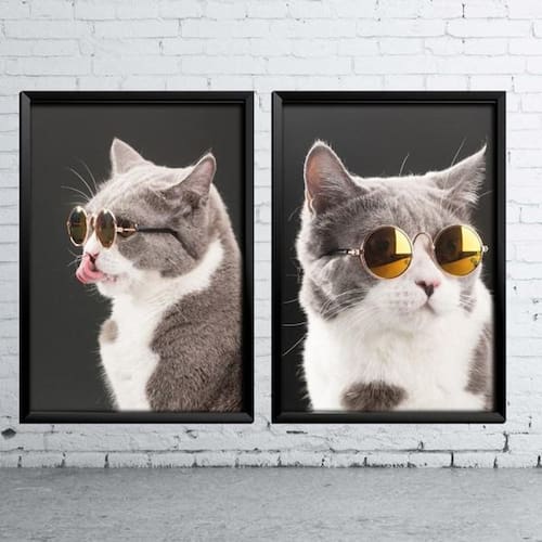Kit De 2 Quadros Gato De Óculos A4 Kit de 2 quadrros a4 com moldura em madeira. Fita dupla face para pendurar sem sujeira. Este produto é a opção ideal para quem deseja comodidade na hora de decorar. informações do produto Moldura com 2cm de largura em madeira pinus com excelente acabamento fosco e arte impressa em vinil fosco alta durabilidade. Acompanha fita dupla face já instalada para pendurar a moldura e embalagem protetora com cantoneiras que evitam danos durante o transporte. Opções de formatos A4: gravuras no tamanho 21x30cm - medida externa: 24x33cm Prazo de produção: 03 a 05 dias úteis após aprovação do pagamento. As cores podem ter pequenas variações em relação a imagem do seu monitor. As medidas podem sofrer mínimas variações. Marca: Sdesign