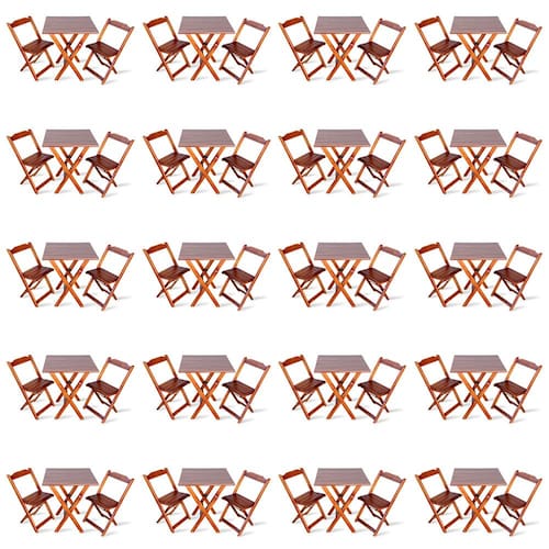 Kit De 20 Conjuntos De Mesa Dobrável 70x70 Com 2 Cadeiras Imbuia - Tarimatã é ideal para bares, restaurantes, estabelecimentos, áreas de lazer e tambem para sua casa. Em madeira maciça, tornando-os resistentes e duráveis. Seu design permite que esse conjunto seja encaixado em qualquer ambiente, trazendo um toque a mais para seu estabelecimento. Além de sua durabilidade, o que lhe trará conforto para servir seus clientes. Por ser dobrável torna-se mais fácil guardar, manusear e limpar o produto. Atenção: EVITE USAR PRODUTOS ABRASIVOS E QUÍMICOS PARA LIMPEZA DO PRODUTO, aconselha-se o uso de pano umedecido para melhor conservação mantenha o produto fora de chuva e sol constantes. *imagens meramente ilustrativas* Dimensões Mesa:Tampo 67,3 x 67,3 cmAltura 77cm Dimensões Cadedeira:Altura da cadeira aberta 78cmAltura da cadeira fechada 89cmAltura até o assento 46cmLargura 41,5cmLargura vão do assento 37,5cmProfundidade 40cmProfundidade do assento 32cm Marca: TARIMATA