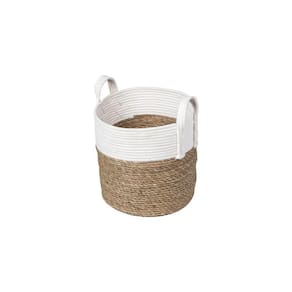 - Kit com 3 cestos organizadores em fibra natural com detalhe em branco;