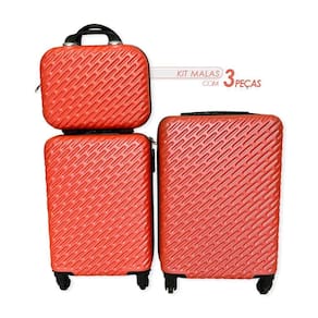 Kit De 3 Malas De Viagem Salmão Kit com 3 Malas de Viagem Esse conjunto de malas é o que estava faltando para organizar sua viagem em família. Com seu exterior em material resistente e durável e um interior espaçoso, esse kit de malas vai suprir qualquer necessidade, seja para viagens com pouca bagagem ou viagens que necessitam de mais espaço. O kit é composto por duas malas de rodinhas giratórias a 360, sendo uma no tamanho M e outra P. Além de vir com uma mala de mãos espaçosa com capacidade de litros. Tem carrinho de alumínio com alça telescópica com 3 posições, permite que você adapte a alça a suas necessidades. No interior das malas possui divisórias com zíper e cinta elástica, para manter a organização dos itens que serão transportados. Para a segurança dos pertences, cada mala de viagem contém um cadeado fixo para travar os puxadores do zíper, crie sua combinação de números e mantenha sua mala mais segura. ESPECIFICAÇÕES: Material: ABS Dimensões: -Mala M: 38cm Largura x 55cm Altura x 22cm Profundidade -Mala P: 33cm Largura x 51cm Altura x 20cm Profundidade -Mala de mão: 27cm Largura x 35cm Altura x 16cm Profundidade
