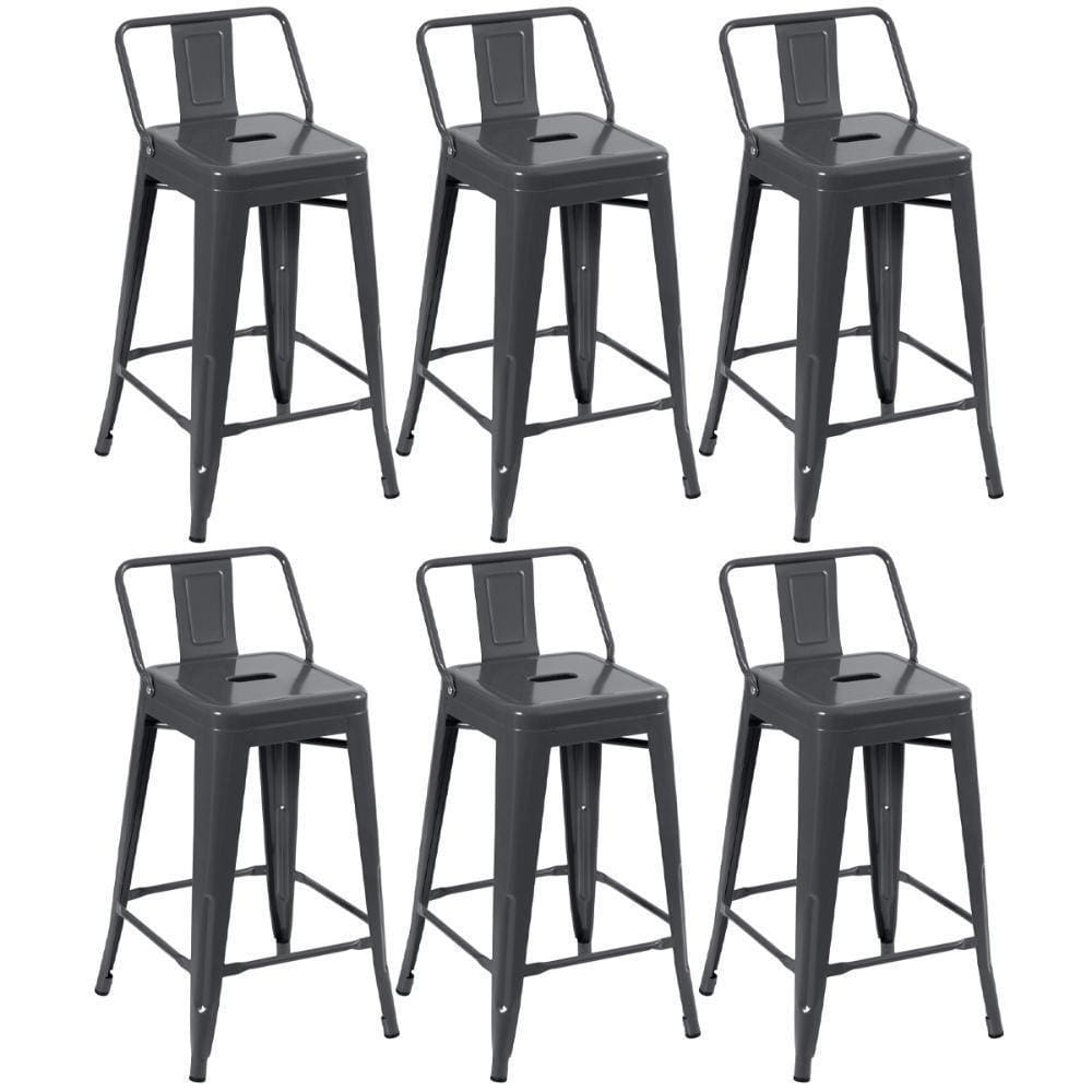 Kit 6 Banquetas Altas de Madeira com Encosto Girafa Preto