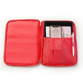 Com esse acessório, você pode armazenar itens como o seu tablet, caderno, anotações, e até sua máscara, álcool gel etc.