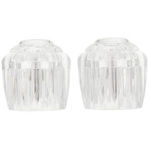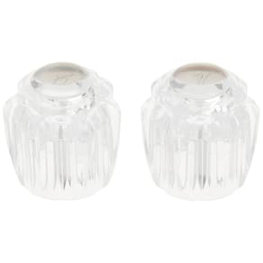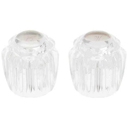COMPLETO DE HASTE E ALÇA DE TORNEIRA: Esta torneira O kit de reconstrução inclui (2) alças de torneira de reposição em acrílico transparente, (2) hastes de torneira — Danco Stem ID 3s—2H/C e (2) assentos e molas — DIMENSÕES DA ALÇA: Essas alças de substituição de torneiras têm uma largura de base de 1-5/8 polegadas e 2 polegadas de altura