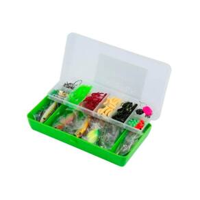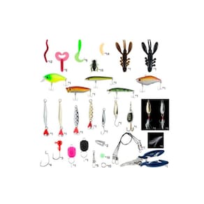 -Kit de iscas para pescar. -Contém 101 peças. -Para pescar em rios. -Adição poderosa para iniciantes e pescadores profissionais. -Adequado para pesca rápida e pesca fina. -Materiais de alta qualidade: cada um dos acessórios de pesca tem um design durável e confiável feito de plástico rígido, plástico macio, aço, ferro ou alumínio. Esses materiais são resistentes à corrosão e permitem capturar uma grande variedade de peixes.