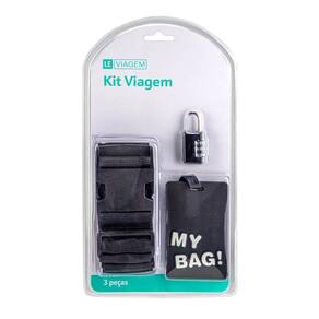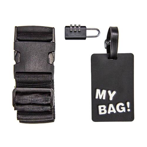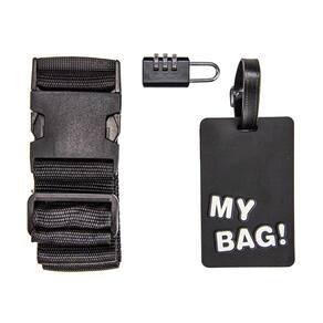 Kit de Acessórios de Viagem Le com 3 Peças Preto Cinta, Cadeado e Tag de Identificação Para Malas