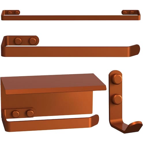 Um banheiro organizado proporciona leveza e praticidade para sua rotina. Para que o banheiro fique em ordem, é necessário o uso de alguns produtos. O kit de Acessórios para Banheiro MAX é super indicado pois contém 4 peças para a harmonização do seu ambiente.O Kit de Acessórios para Banheiro MAX possuem um design clean e sofisticado, suas barras são de alumínio maciço, com acabamento em pintura eletrostática epóxi, garantindo maior durabilidade e resistência, não havendo problemas com ferrugem.BENEFÍCIOSAcabamento PremiumResistente a ÁguaNão EnferrujaTampa de acabamento para esconder as cabeças dos parafusosFuros alinhados com parafusos sextavados, facilitando o acesso da ferramenta, tornando a instalação muito simples e rápidaESPECIFICAÇÕES TÉCNICACor: RosêAcabamento: Pintura EletrostáticaMaterial : Barra Chata de Alumínio MaciçoEspessura da barra chata: 4mmLargura da barra chata: 16mmQuantidade de Peças do Kit: 04MEDIDAS.Porta Papel Higiênico: Altura 6.5cm x Profundidade 9cm x Largura 15cmGancho: Altura 6.5cm x Profundidade 5.5cm x Largura 1.6cmPorta Toalha de Banho: Altura 1.6cm x Profundidade 6cm x Largura 44cmPorta Toalha de Rosto: Altura 1.6cm x Profundidade 6cm x Largura 21cmItens Inclusos:01 UN - Porta Papel Higiênico MAX Rosê01 UN - Gancho MAX Rosê01 UN - Porta toalhas de Banho MAX Rosê01 UN - Porta Toalhas de Rosto MAX RosêTodos os itens acompanham parafusos, buchas e tampas de acabamento para esconder a cabeça do parafuso. Marca: Não Informado
