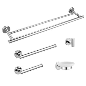 COMPOSIÇÃO DO KIT: 01 - Toalheiro Duplo: Comprimento 60 cm / Largura 12cm 02 - Toalheiro: Comprimento 28,5 cm / Largura 8cm 03 - Papeleiro “Porta Papel”: Comprimento 16 cm / Largura 8cm 04 - Saboneteira: Comprimento 12 cm / Diametro 10cm 05 - Cabide “Gancho”: Comprimento 6 cm / Largura 4cm Obs: Parafusos, buchas de fixação e chave Allen acompanham o kit.