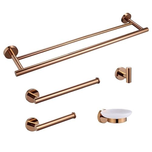 Kit Acessórios para Banheiro Rose Gold 5 Peças Tubular Aço Inox