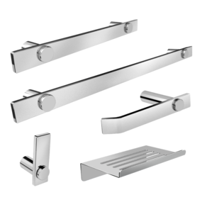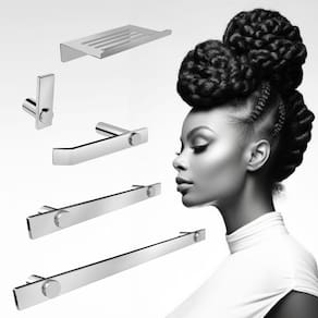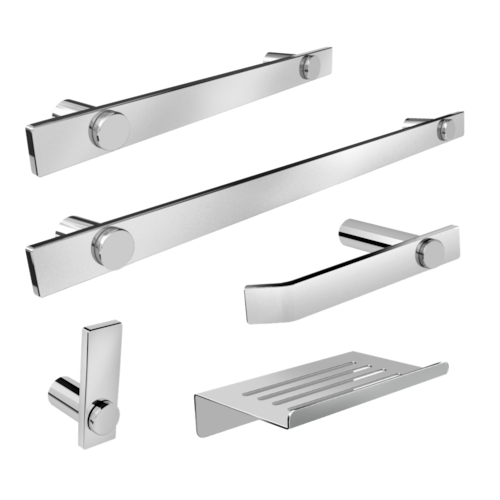 O kit acessórios de banheiro da linha Patmos possui um design atemporal e discreto, são peças de requinte que se destaca com glamour no seu banheiro.