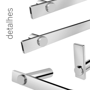 • Fabricado em metal aço inox. • Disponível no Prata Alto Brilho, Escovado e Preto Fosco. • Pode ser instalado em parede, azulejo e porcelanato.