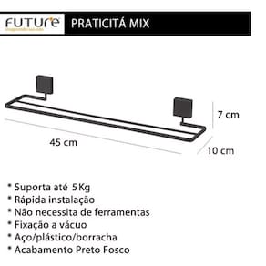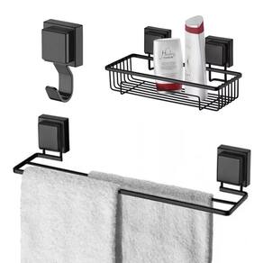 Kit porta toalha + porta shampoo + gancho multiuso ventosa preto fosco future: este conjunto é a solução definitiva para organizar o seu banheiro com praticidade e estilo. Com um porta-toalha, um porta-shampoo e um gancho multiuso, todos em preto fosco e equipados com ventosas da linha future, este kit oferece funcionalidade e elegância, sem a necessidade de furos ou instalações complicadas.