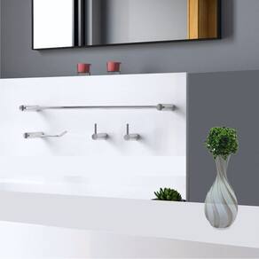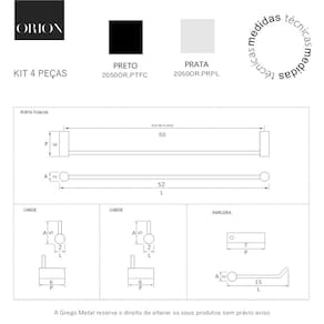 - MEDIDA TÉCNICA CM: (Cabide A5xL2xP6)-(Papeleira A2xL15xP7)-(Porta Toalha A2xL50xP6).
