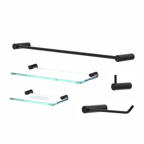 - 2110or - 5 pecas - 01 Cabide, 01 Papeleira, 01 Porta Toalha 50cm, 01 Saboneteira, 01 Porta Shampoo