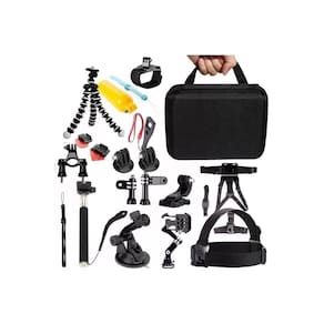 Kit de acessórios Bastón Suporte para câmera ** NÃO INCLUI CÂMERA ESPORTIVA **** NÃO INCLUI CÂMERA ESPORTIVA **. Kit de acessórios para câmeras esportivas. 28 acessórios diferentes. Ideal para todo tipo de atividades ao ar livre, aquáticas, bicicleta, carro, capacetes, peixinho e muito mais! Inclui maleta de transporte Nota: ** NÃO INCLUI CÂMERA ESPORTIVA **** NÃO INCLUI CÂMERA ESPORTIVA **Conteúdo do pacote:. Banda ajustável para cabeça com base. Banda ajustável para peito com base. Banda ajustável de muñequera com base. Bandas de segurança para câmera esportiva + Suportes. Suporte da para o manuseio da bicicleta. Trípode. Monopad Baston Selfie. Flutuador para . Suporte com chupão para os parabrisas do Auto. Extensores com parafusos grandes e pequenos para suportes da . Mala para transporte