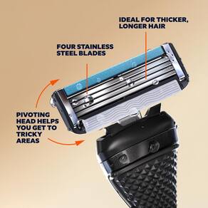 Dollar Shave Club - Kit de afeitado con mango Diamond Grip, 4 recambios de cuchilla de 4 hojas y cubierta para cuchillas, mango fácil de agarrar, ideal para viajar, color azul. - INCLUYE: Mango Serie Club con diseño de agarre tipo diamante, cuatro cartuchos de cuchilla Serie Club de 4 hojas, cubierta para la navaja. - PARA CABELLO MÁS LARGO: Perfecto para cabello más largo y zonas difíciles de afeitar. - LA NAVAJAA: 4 cuchillas de acero inoxidable de corte preciso en una cabeza compacta que facilitan un afeitado sin esfuerzo. Las cuchillas están espaciadas para un enjuague sencillo. - EL MANGO: Mango pesado con patrón diamante de la Serie Club diseñado para brindar máxima comodidad y control. - LA CUBIERTA: Cubierta ligera de color gris para mantener las cuchillas limpias y seguras durante los viajes.